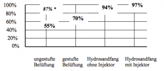 * Auch bei ungestufter Belüftung kann eine hohe Sandabscheidung erreicht werden, falls die Beschickung und/oder der Lufteintrag niedrig sind.